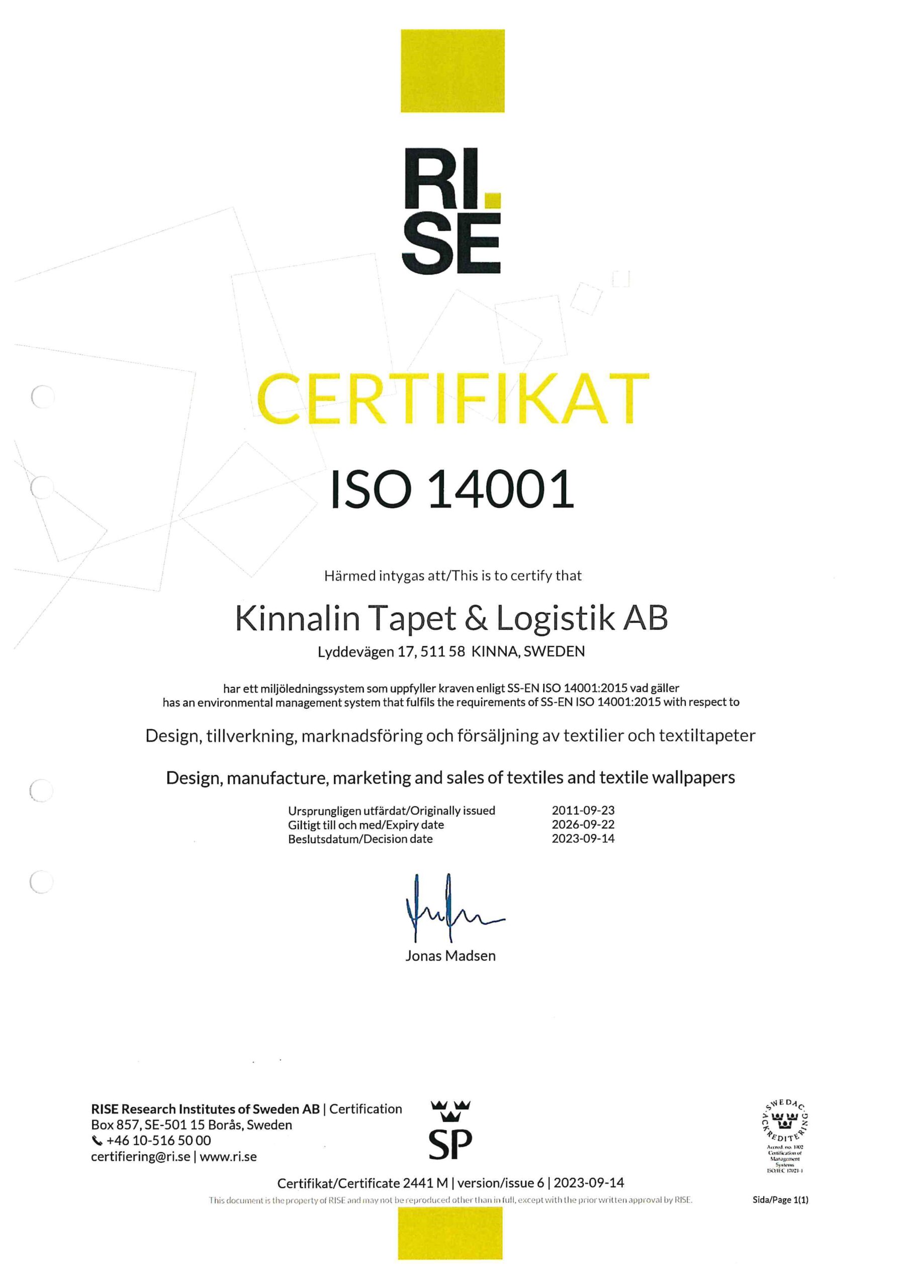 Givetvis är vi certifierade enligt ISO 14001 och har varit så under lång tid